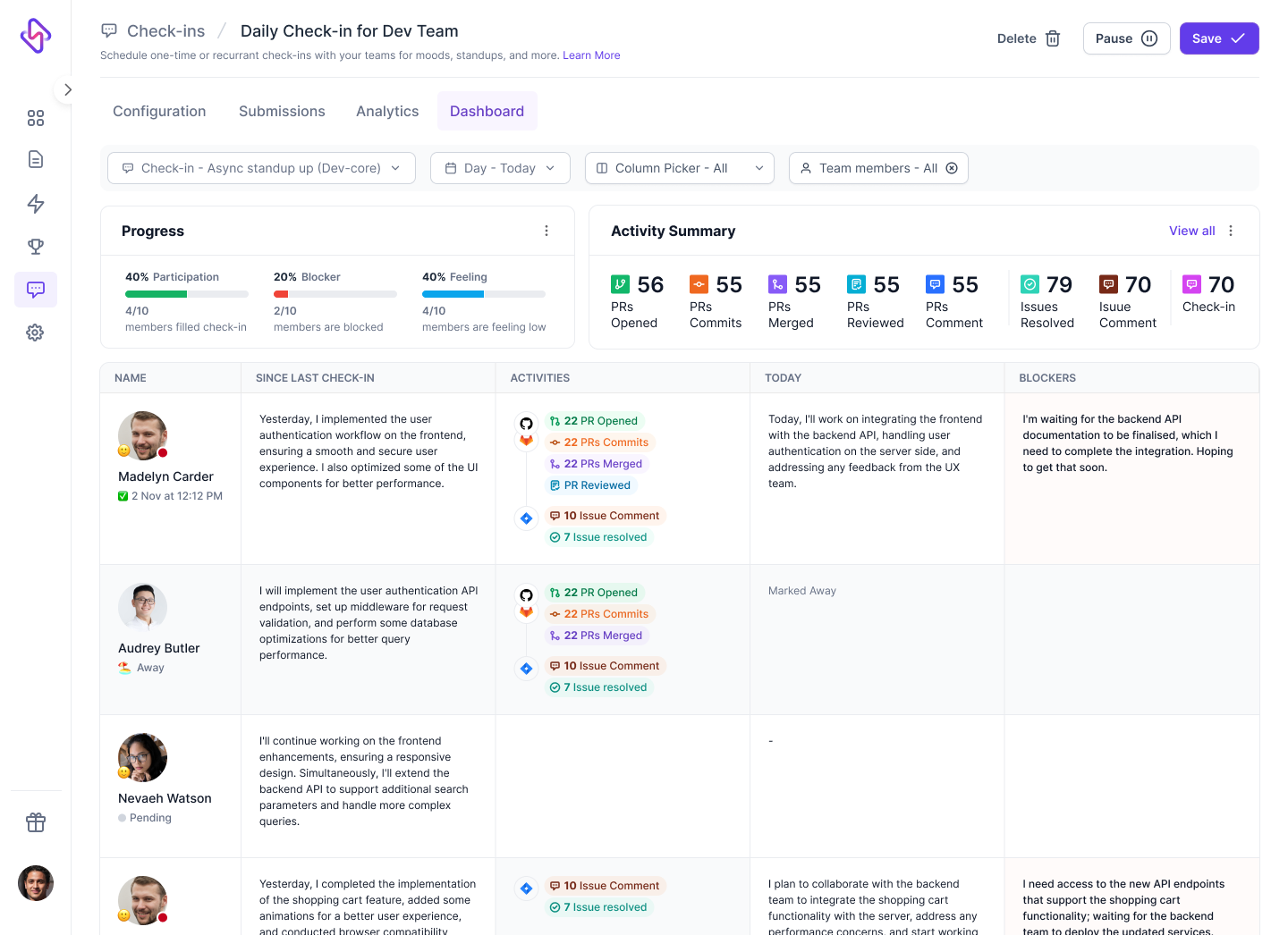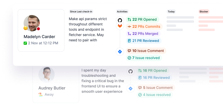 Synchronous standups can be a nightmare for globally distributed remote teams. They demand everyone to show up at the same time, no matter their time zone or schedule. Expecting everyone to waltz to the same time zone's tune can stifle the flow state of devs, cut down their deep work hours, and even harm their work-life balance.