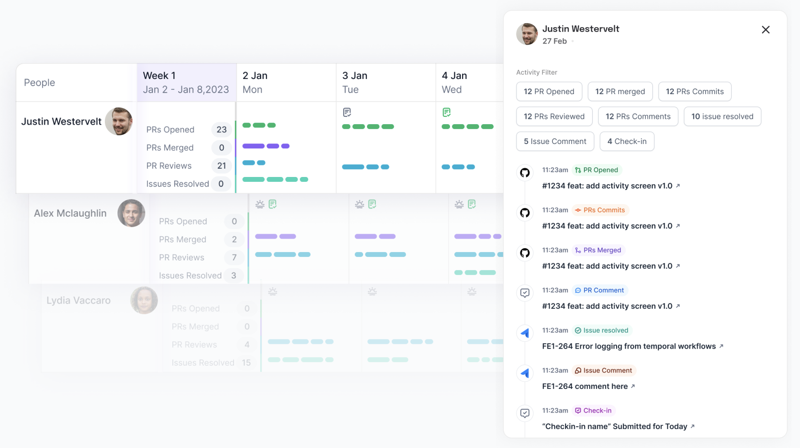While these meetings were originally designed to be synchronous, the growing trend of remote and hybrid work environments has made synchronous stand-ups increasingly irrelevant. We have a solution that addresses this and closes the loop on the end-to-end developer experience and productivity for your engineering team, provided by Hatica.