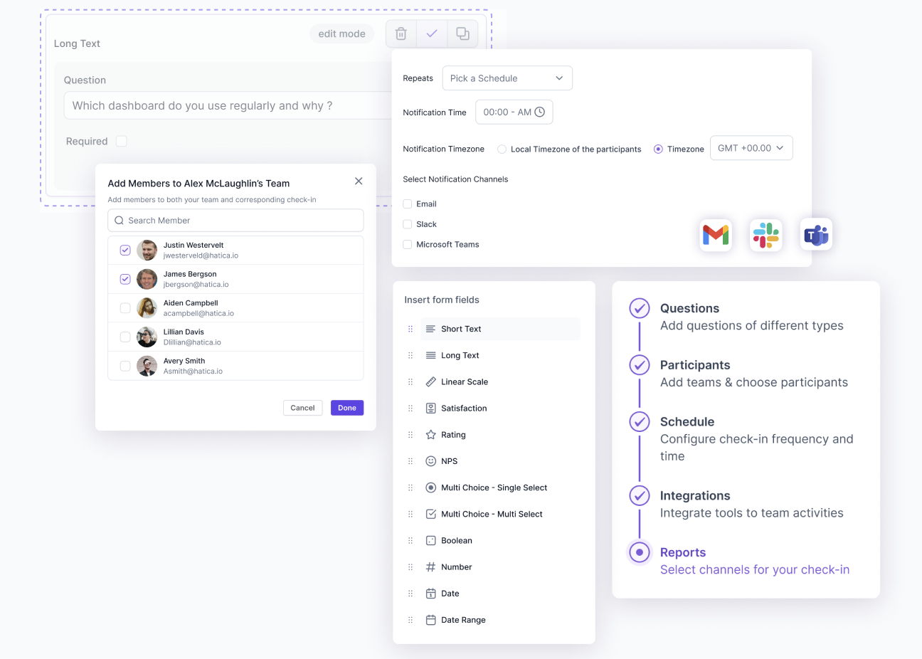 These standups can be automated, and delivered to where your team works, and is located: Slack, or Microsoft teams, or in your Email. All you have to do is: