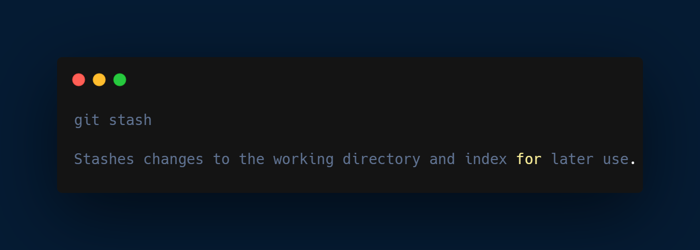 This git command allows developers to temporarily save changes to the working directory without committing them to the Git repository. This command is useful for saving changes that are not yet ready to be committed, such as unfinished features or experimental code. Git stash can help developers keep their code organized and easily switch between different code states.