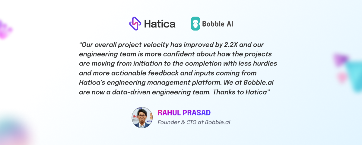 Engineering Leadership at Bobble.ai has seen significant benefits with Hatica’s useful insights thereby optimizing its engineering operations. They have seen improvements with the overall release management enabling teams to take up priority projects first. The overall project velocity has increased by 2.2X thus boosting the developers’ confidence in the work they are delivering.